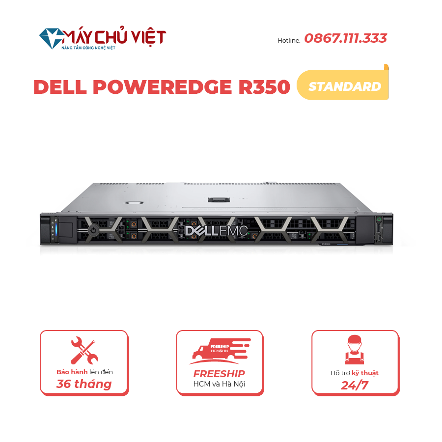 Đặt mua Máy Chủ Dell PowerEdge R350 – 4×3.5″ HP/Perc (E-2334)