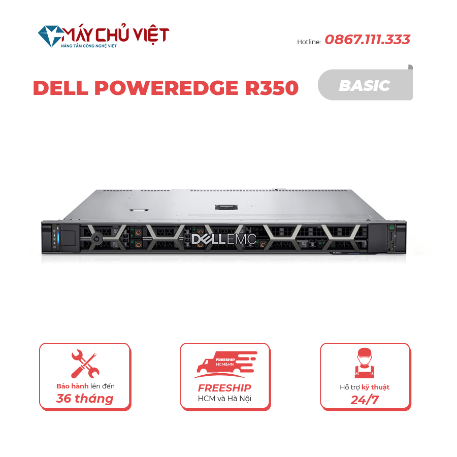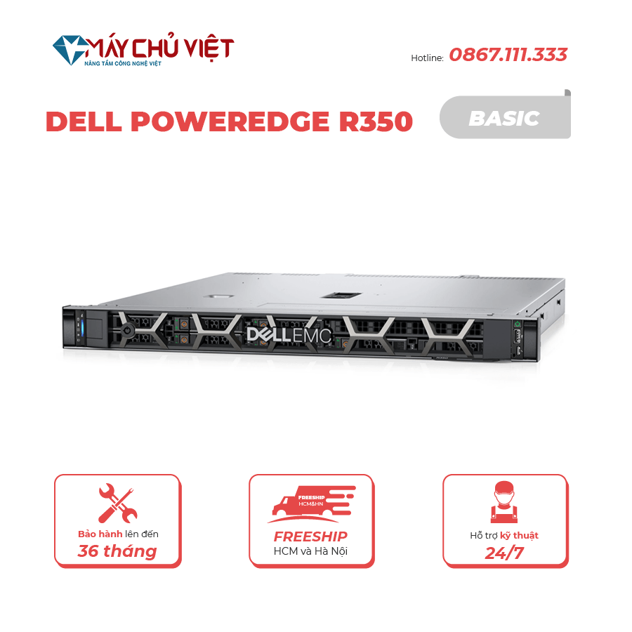 Đặt mua Máy Chủ Dell PowerEdge R350 – 8×2.5″ HP/Perc (E-2324G/8GB)